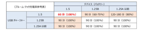 USBチャージャーVer.1.5で旧バージョンのバッテリーを充電すると、1回の充電ではフル充電にならない可能性があるとのこと。