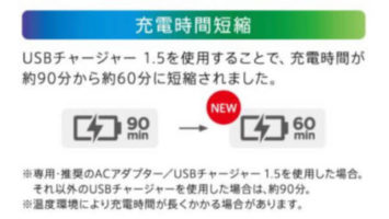 Ver.1.5は充電時間が従来の約90分から約60分に短縮され、